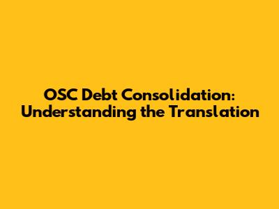 OSC Debt Consolidation: Understanding The Translation