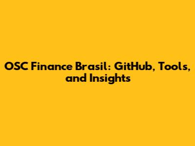 OSC Finance Brasil: GitHub, Tools, And Insights