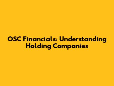 OSC Financials: Understanding Holding Companies