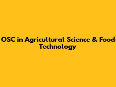 OSC In Agricultural Science & Food Technology