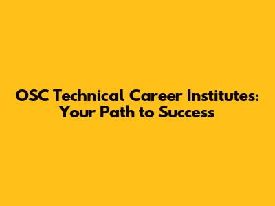 OSC Technical Career Institutes: Your Path To Success