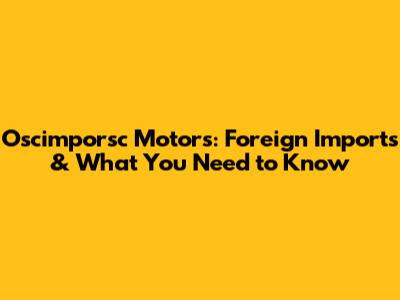 Oscimporsc Motors: Foreign Imports & What You Need To Know