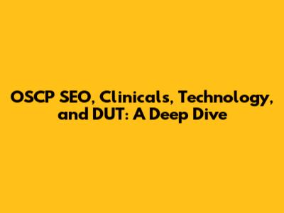 OSCP, SEO, Clinicals: Tech & DUT Deep Dive