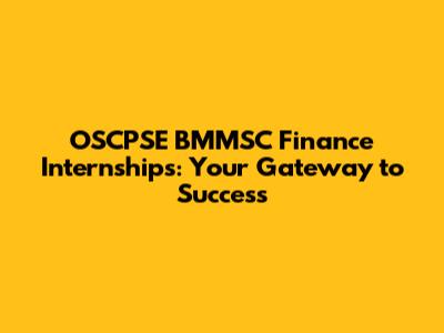 OSCPSE BMMSC Finance Internships: Your Gateway To Success