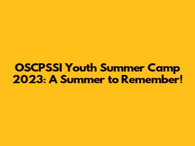 OSCPSSI Youth Summer Camp: Fun, Learning, And Adventure!