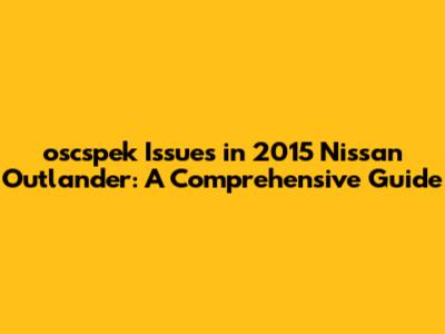 Oscspek Issues In 2015 Nissan Outlander: A Comprehensive Guide