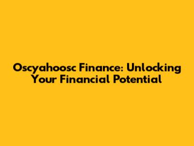 Oscyahoosc Finance: Unlocking Your Financial Potential