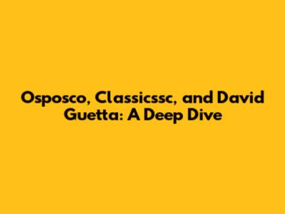 Osposco, Classicssc, And David Guetta: A Deep Dive