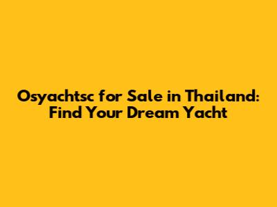 Osyachtsc For Sale In Thailand: Find Your Dream Yacht