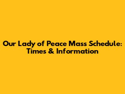 Are you looking for the Our Lady of Peace Mass schedule? Knowing the Mass schedule is essential for Catholics who wish to attend services regularly. Whether you're a parishioner or a visitor, having access to the correct Mass times ensures you can participate in the liturgical celebrations without any hassle. This article provides a comprehensive guide to the Mass schedule at Our Lady of Peace, along with other helpful information to enhance your worship experience.