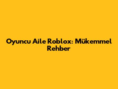 Oyuncu Aile Roblox: Mükemmel Rehber
