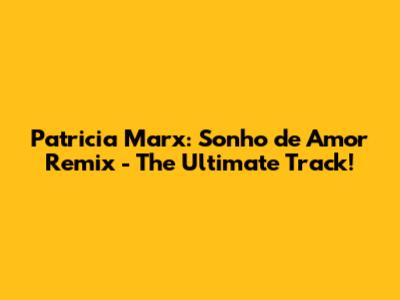 Patricia Marx: Sonho De Amor Remix - The Ultimate Track!