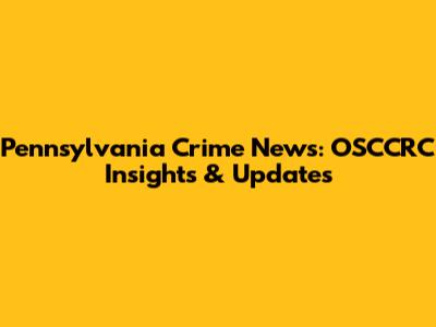 Pennsylvania Crime News: OSCCRC Insights & Updates