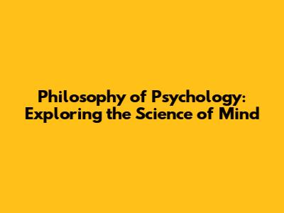 What is the Philosophy of Psychology?