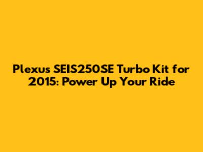 Plexus SEIS250SE Turbo Kit For 2015 Models: The Ultimate Upgrade