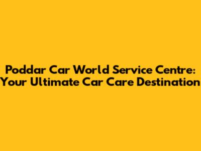 Poddar Car World Service Centre: Your One-Stop Car Care Hub