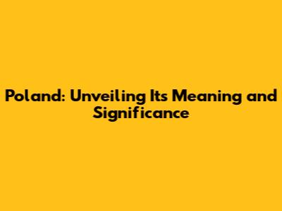 Poland: Unveiling Its Meaning And Significance