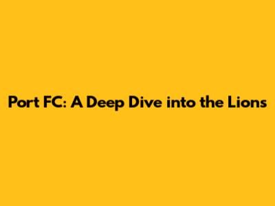 Port FC: History, Players, And Glory