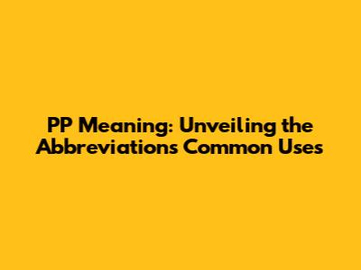 Have you ever stumbled upon the abbreviation "PP" and wondered what it meant? Well, guys, you're not alone! This seemingly simple abbreviation can have a variety of meanings depending on the context. This article will dive deep into the most common uses of "PP," so you can confidently decipher its meaning no matter where you encounter it. We'll explore everything from its use in academic writing to its more informal appearances in everyday conversation. Understanding PP's diverse applications ensures effective communication and prevents potential misunderstandings. So, buckle up and let's unravel the mystery behind "PP" together! We aim to provide clarity and context, equipping you with the knowledge to navigate this abbreviation with ease. Remember, context is king, and by understanding the different scenarios where PP is used, you'll be well-prepared to interpret its meaning accurately. Whether you're a student, a professional, or simply curious, this comprehensive guide will serve as a valuable resource. Think of this as your personal decoder ring for all things PP, ensuring you're never left scratching your head again. We'll break down each meaning with clear examples, making it easy to grasp and remember. Plus, we'll touch upon some less common uses to give you a truly comprehensive understanding. By the end of this article, you'll be a PP pro, ready to confidently tackle any situation where this abbreviation pops up. No more confusion, no more guesswork – just clear, concise understanding. So, let's get started and unlock the secrets of PP!