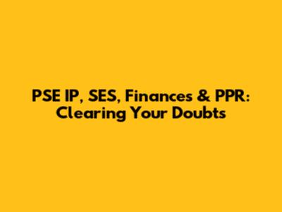 PSE IP, SES, Finances & PPR: Clearing Your Doubts