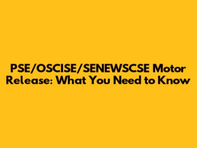 PSE/OSCISE/SENEWSCSE Motor Release: What You Need To Know