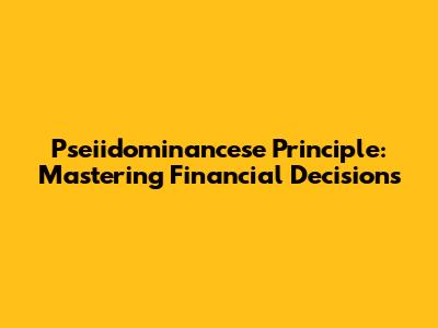 Hey everyone! Ever heard of the pseiidominancese principle in finance? Don't worry if you haven't; it's not exactly a household name. But, trust me, it's a super important concept for making smart financial choices. In this article, we're going to break down what the pseiidominancese principle is all about, how it impacts your financial decisions, and why understanding it can seriously up your money game. So, let's dive in and get you familiar with a framework that can help you become a finance guru.