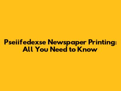 Pseiifedexse Newspaper Printing: All You Need To Know