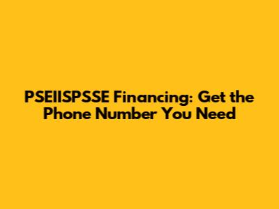 PSEIISPSSE Financing: Get The Phone Number You Need