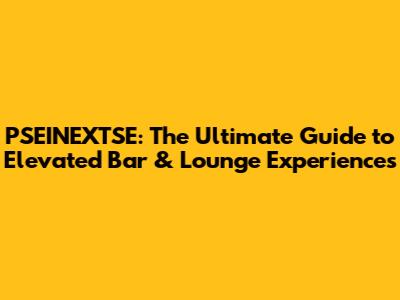 PSEINEXTSE: The Ultimate Guide To Elevated Bar & Lounge Experiences