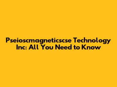 Pseioscmagneticscse Technology Inc: All You Need To Know