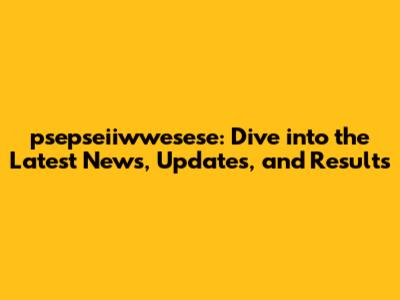 Psepseiiwwesese: Latest News, Updates, And Results