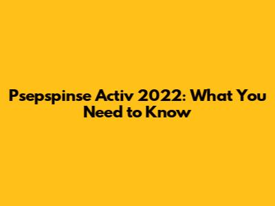 Psepspinse Activ 2022: What You Need To Know
