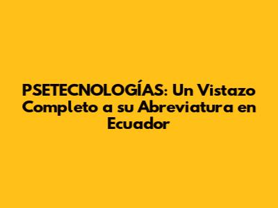 PSETECNOLOGÍAS: Entendiendo La Abreviatura En Ecuador