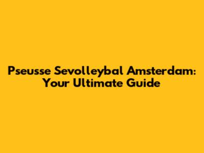 Pseusse Sevolleybal Amsterdam: Your Ultimate Guide