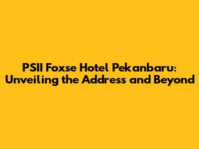 PSII Foxse Hotel Pekanbaru: Your Guide To Location And More