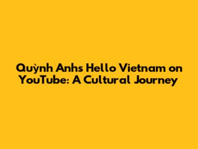 Quỳnh Anh's 'Hello Vietnam' On YouTube: A Cultural Journey