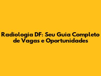 Radiologia DF: Seu Guia Completo De Vagas E Oportunidades