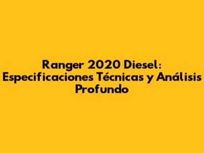 Ranger 2020 Diesel: Especificaciones Y Rendimiento
