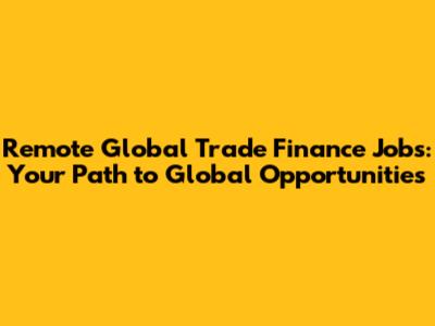 Remote Global Trade Finance Jobs: Your Ultimate Guide
