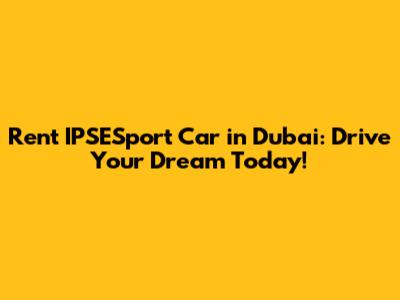 Rent IPSESport Car In Dubai: Drive Your Dream Today!