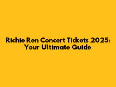 Where and How to Secure Your Richie Ren 2025 Tickets