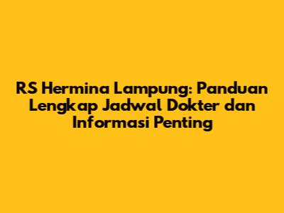 RS Hermina Lampung: Jadwal Dokter & Informasi Lengkap