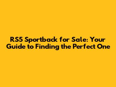 RS5 Sportback For Sale: Your Guide To Finding The Perfect One