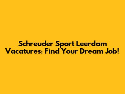 Schreuder Sport Leerdam Vacatures: Find Your Dream Job!