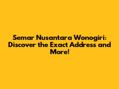 Semar Nusantara Wonogiri: Full Address & Info