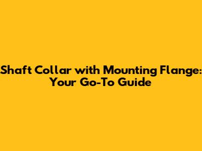 Shaft Collar With Mounting Flange: Everything You Need To Know