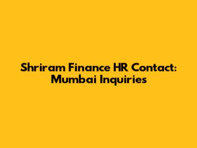 Shriram Finance HR Contact: Mumbai Inquiries