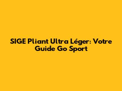 SIGE Pliant Ultra Léger: Votre Guide Go Sport