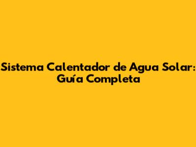 Sistema Calentador De Agua Solar: Guía Completa