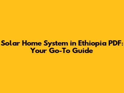 Solar Home System Ethiopia PDF: Your Go-To Guide